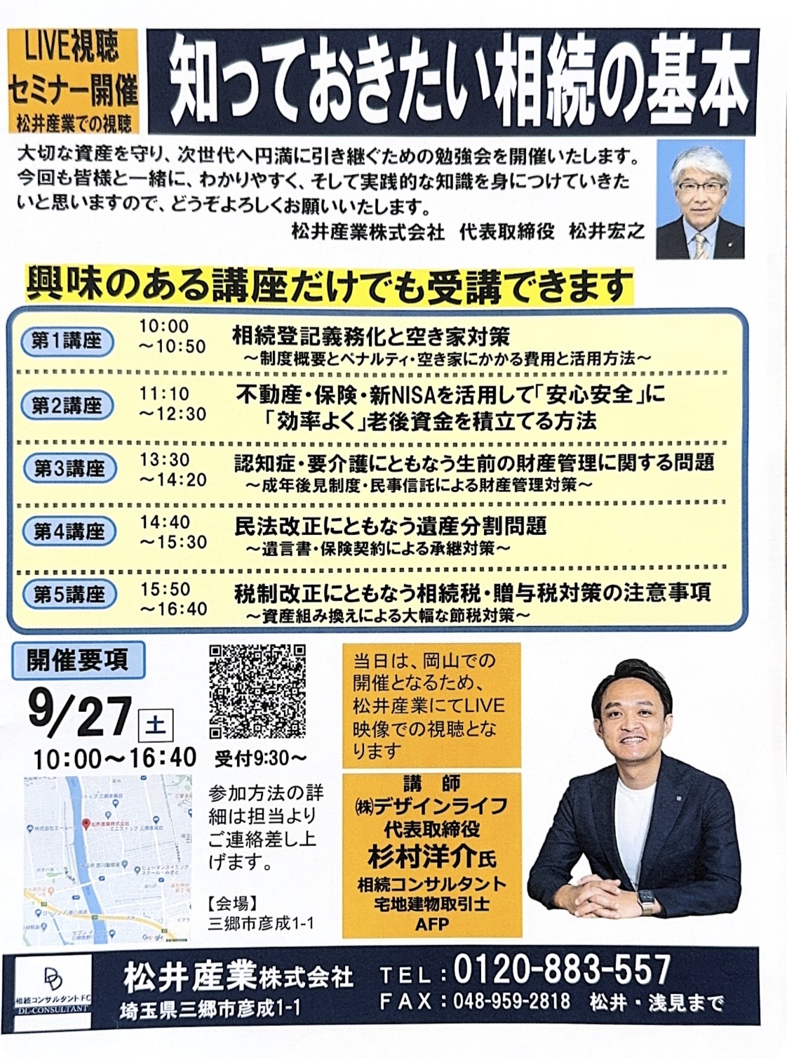本日9月27日(土)、松井産業株式会社の主催で、セミナー「知っておきたい相続の基本」が開催されました。