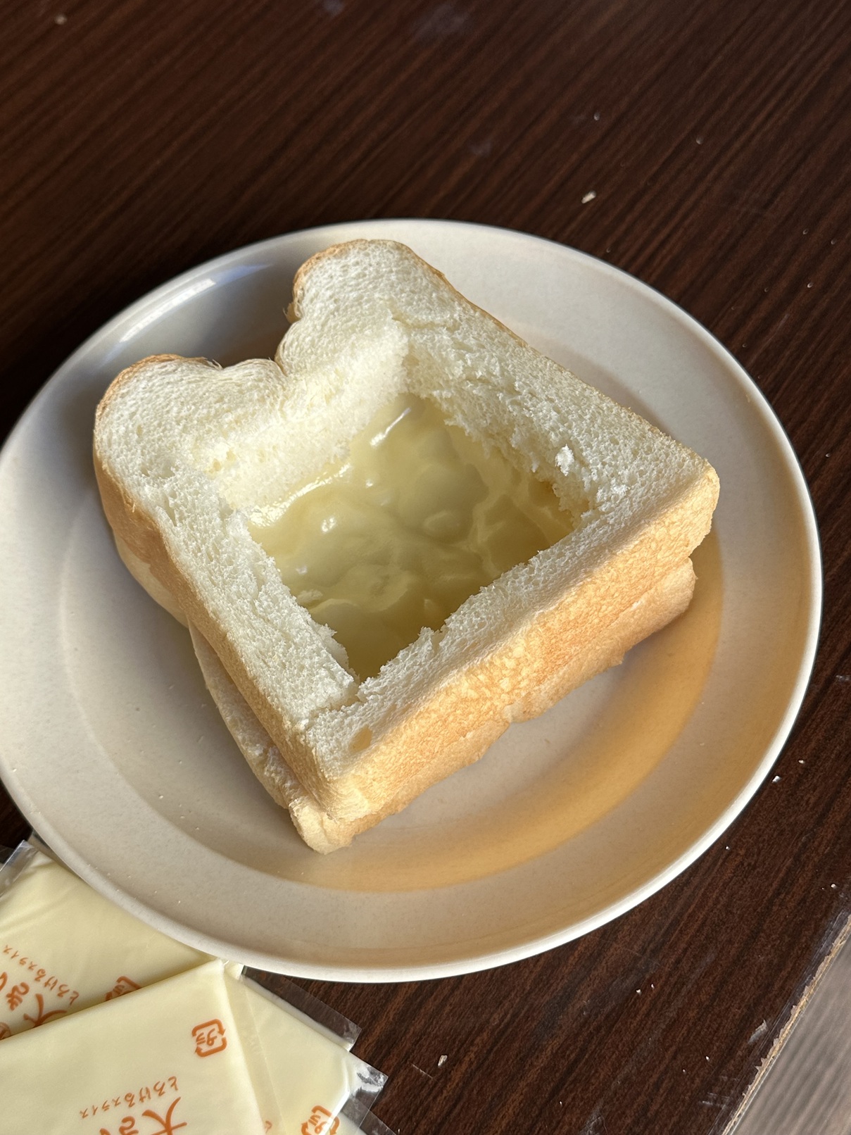 しかも、今回はただのお皿ではありません。厚切りの食パンをくり抜いた「パンの器」で提供されました!
