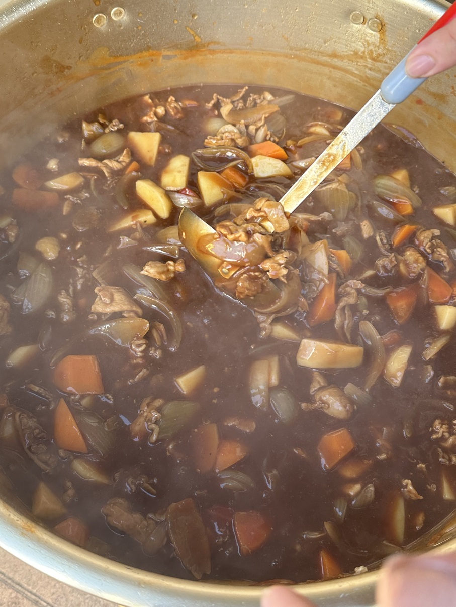 お肉と野菜の旨味が溶け出した、濃厚でリッチなシチューが完成しました。
