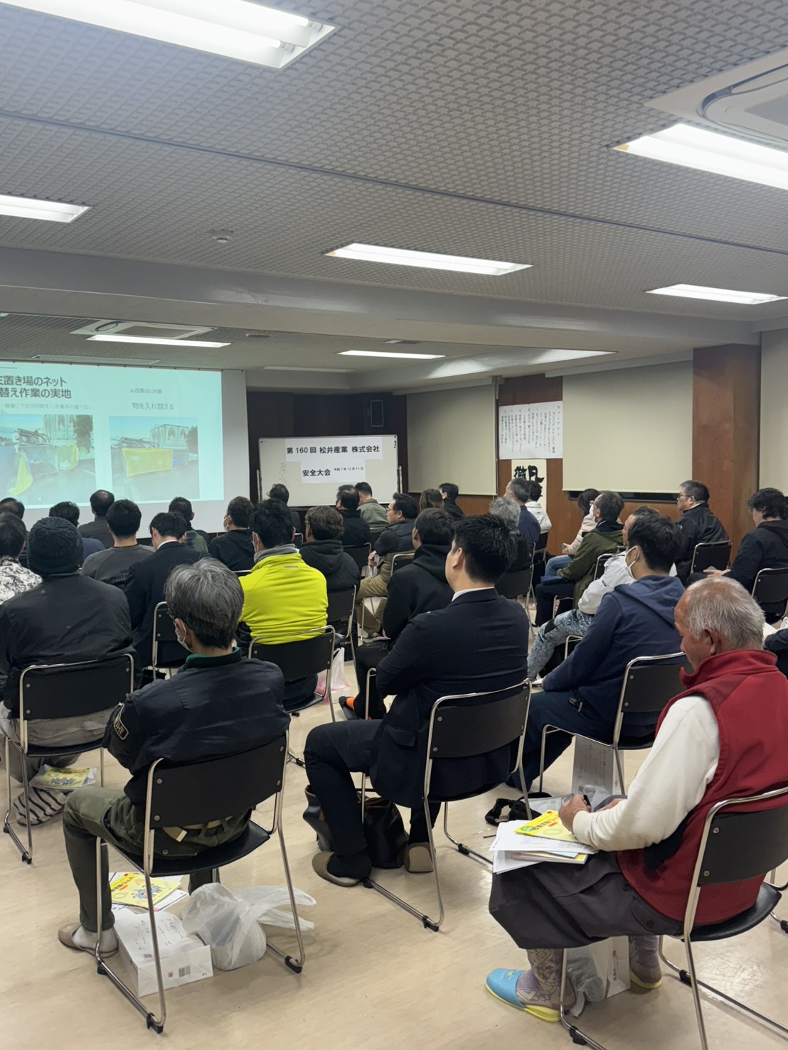 この会では、私たちが毎週行っている「現場パトロール」の記録をスクリーンに投影し、全員で確認します。 「いつ、誰が見ても恥ずかしくない現場か?」を常に問いかけ、職人さん一人ひとりの意識を高めています。