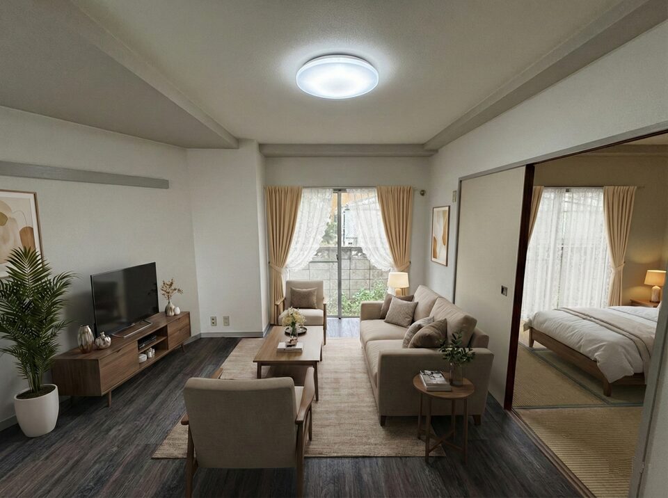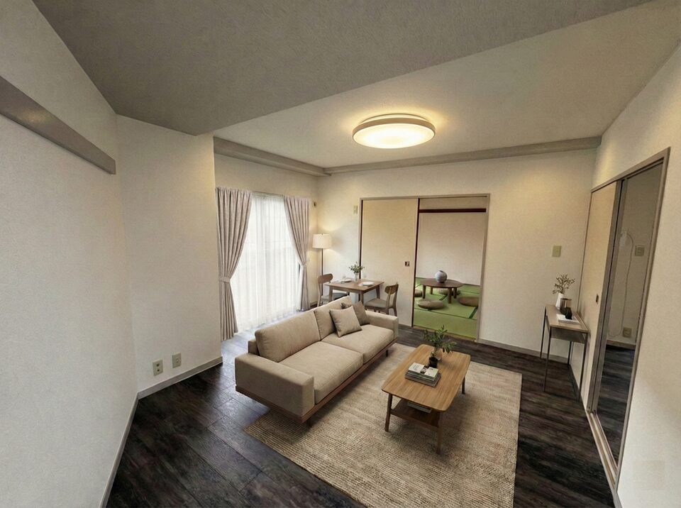今回は、そんな皆様のために、リノベーションが完了したこのお部屋での暮らしをイメージしやすいよう、CGによるインテリア配置イメージ(バーチャルステージング)を作成しました! 家具なしの空室を見るだけでは気づけない、このお部屋のポテンシャルをご紹介します。