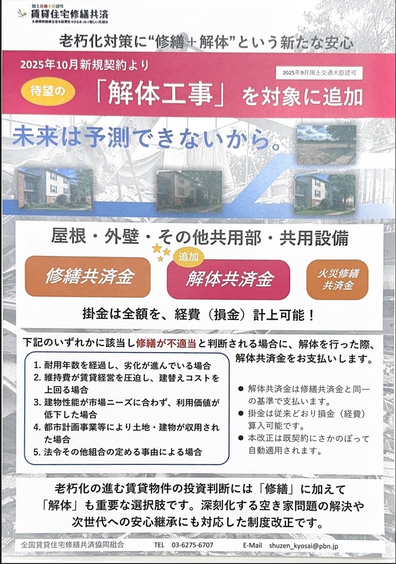 ■ 2025年10月より「解体工事」が共済対象に追加!