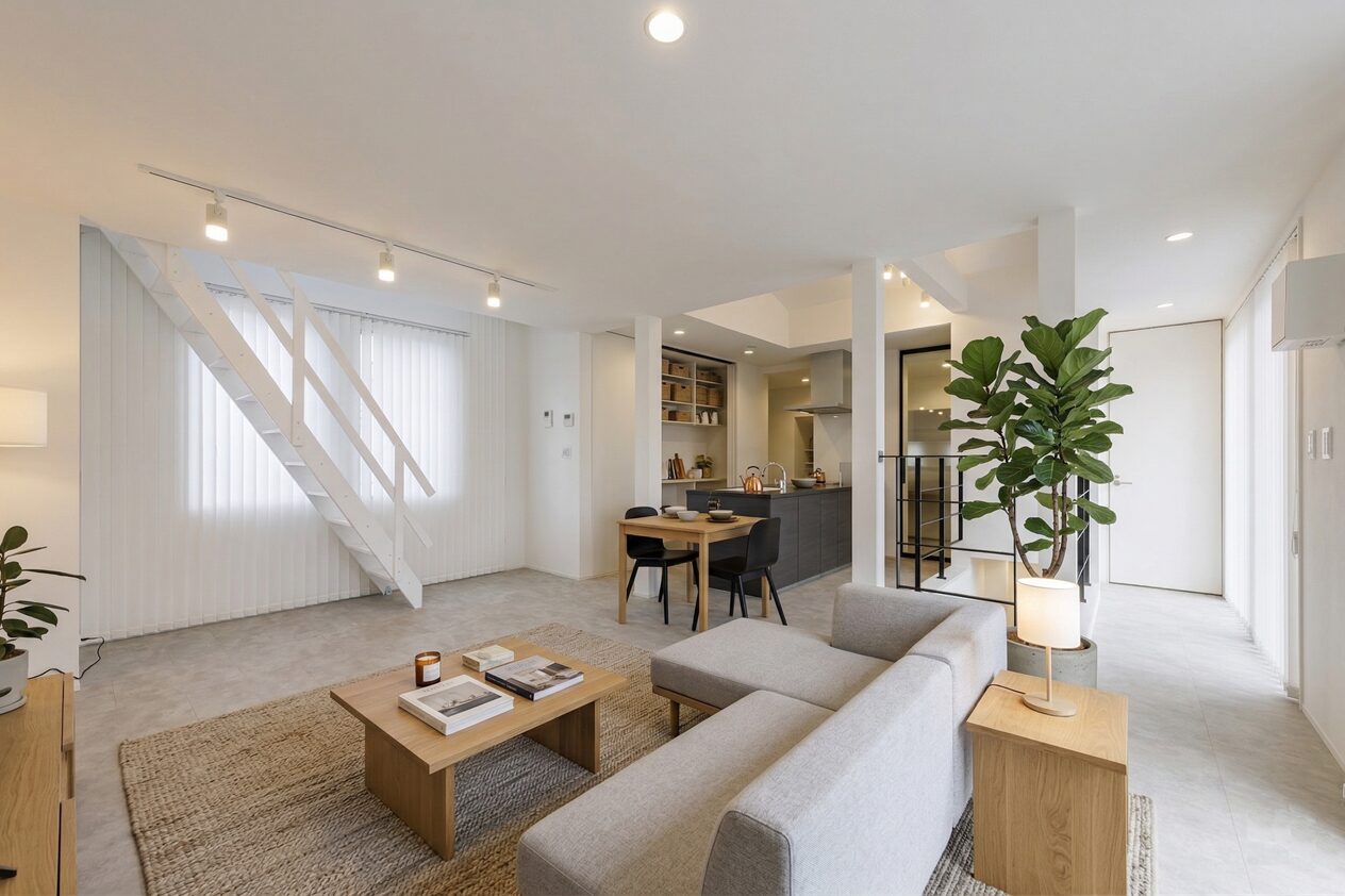 - 収納戦略: パントリーや可動式の棚を随所に配し、さらに約19㎡もの大容量ロフトを完備。日常の雑多なものを隠し、ミニマルな暮らしを叶えます。