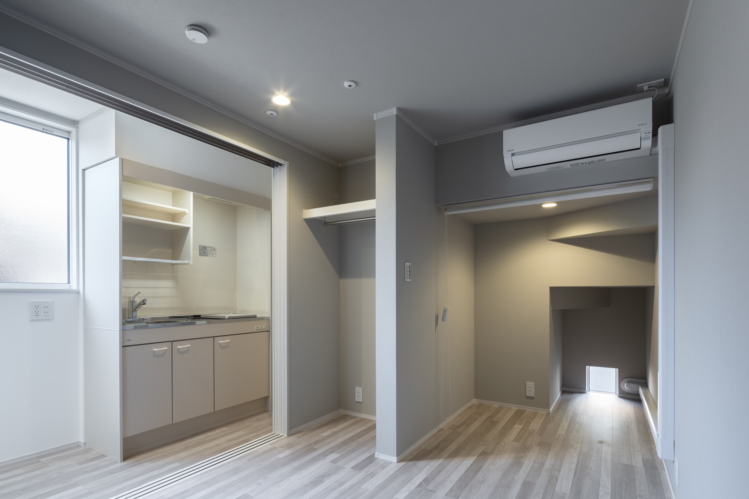 1階には収益源となる単身者向け住戸を3戸レイアウト。居住者のプライバシーに配慮しつつ、外観デザインを邸宅全体と調和させることで、エリア内でも目を引く高付加価値な物件へと昇華させました。