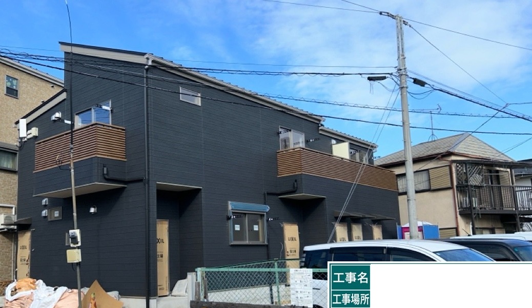 松井産業の施工日記:船橋市のスタイリッシュな賃貸住宅、外装工事がクライマックスへ
